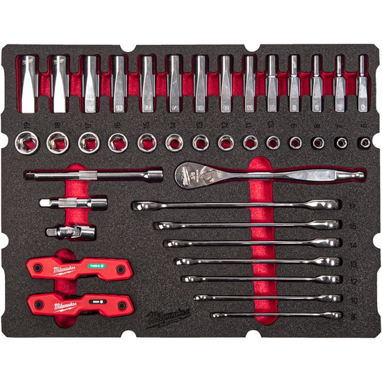 Wkładka piankowa z nasadkami i grzechotką 3/8" i kluczami płasko-oczkowymi - do skrzyni Packout z szufladami, 39 szt Milwaukee 4932493640
