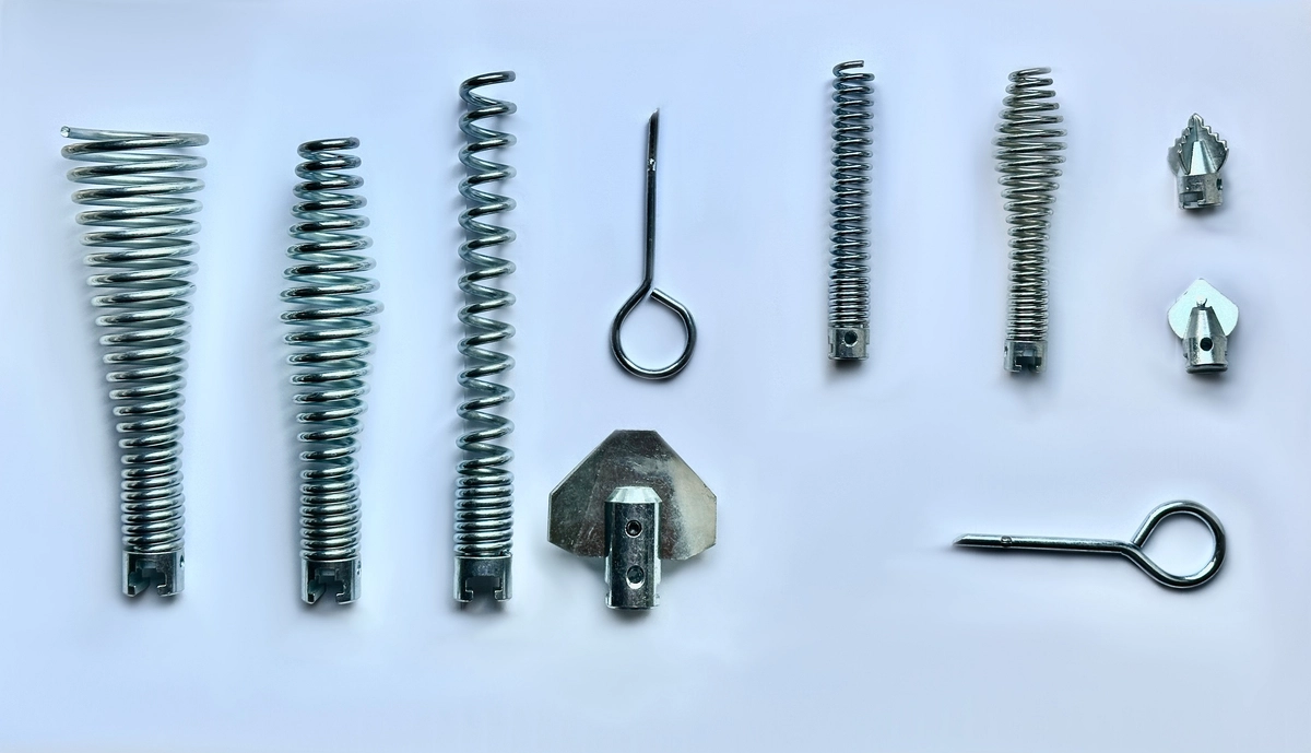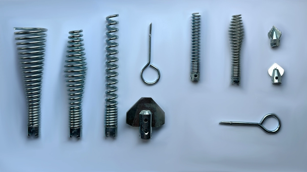 - Zestaw końcówek do sprężyn 16mm oraz 22 mm kompatybilnych z przepychaczem GTools, RIDGID, REMS, Rothenberger, Virax.
