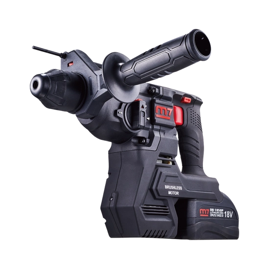 Kompaktowa młotowiertarka zasilana akumulatorem li-ion 18V o pojemności 5.0 Ah przeznaczona do intensywnej eksploatacji podczas prac wykończeniowych, remontowo-budowlanych.