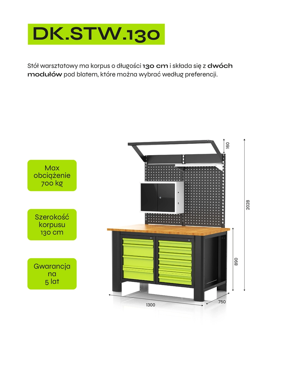 Stoły warsztatowe z serii DK.STW to gwarancja organizacji i ładu na stanowisku roboczym dzięki możliwości dostosowania do indywidualnych potrzeb użytkującego.