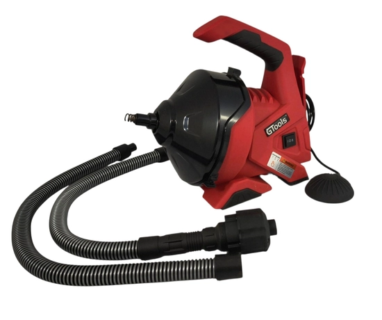 Maszyna do czyszczenia odpływów GTOOLS TG50A jest przeznaczona do czyszczenia przewodów odpływowych o średnicy od 20 mm (3/4") do 50 mm (2") w zlewozmywakach, wannach lub prysznicach. Jest wyposażona w sprężynę o średnicy 7,7mm i długości 9 m.