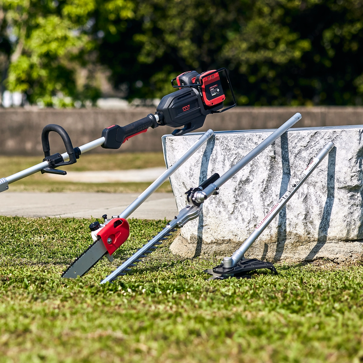 - Wszechstronność: Jedno narzędzie, wiele funkcji – urządzenie może pełnić rolę podkaszarki, piły łańcuchowej lub nożyc do żywopłotu. Wymiana głowic roboczych jest szybka i intuicyjna, dzięki czemu możesz płynnie przechodzić między różnymi zadaniami.