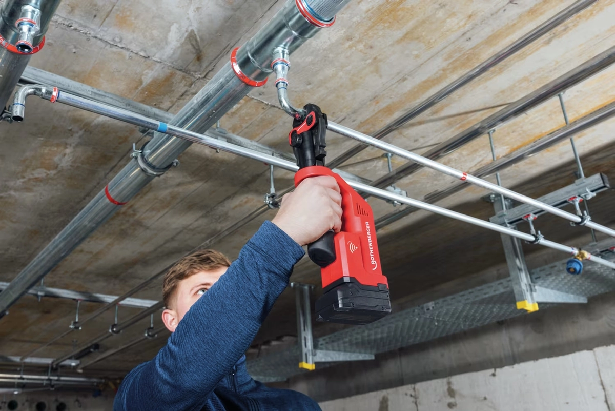 Mała, kompaktowa zaciskarka z zasilaniem akumulatorowym Li-Ion 18V/2Ah do zaciskania złączek o max. średnicy Ø 40 mm ( tworzywa / rury wielowarstwowe ) i Ø 35 mm ( metale ). Dzięki zastosowaniu technologii CFT stała siła zacisku 19 kN gwarantowana na 40 000 zacisków!