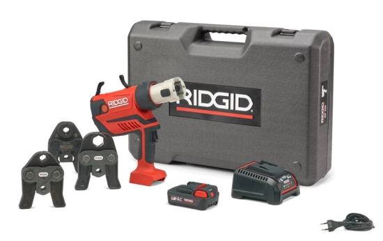 - Zaciskarka, zaginarka do rur akumulatorowa miedź, stal, pex. RP350-B można używać z akumulatorami Li-Jon RIDGID 18 V, lub z akumulatorami 18 V Makita Li-Jon (czarna obudowa) lud adapterem sieciowym Ridgid.