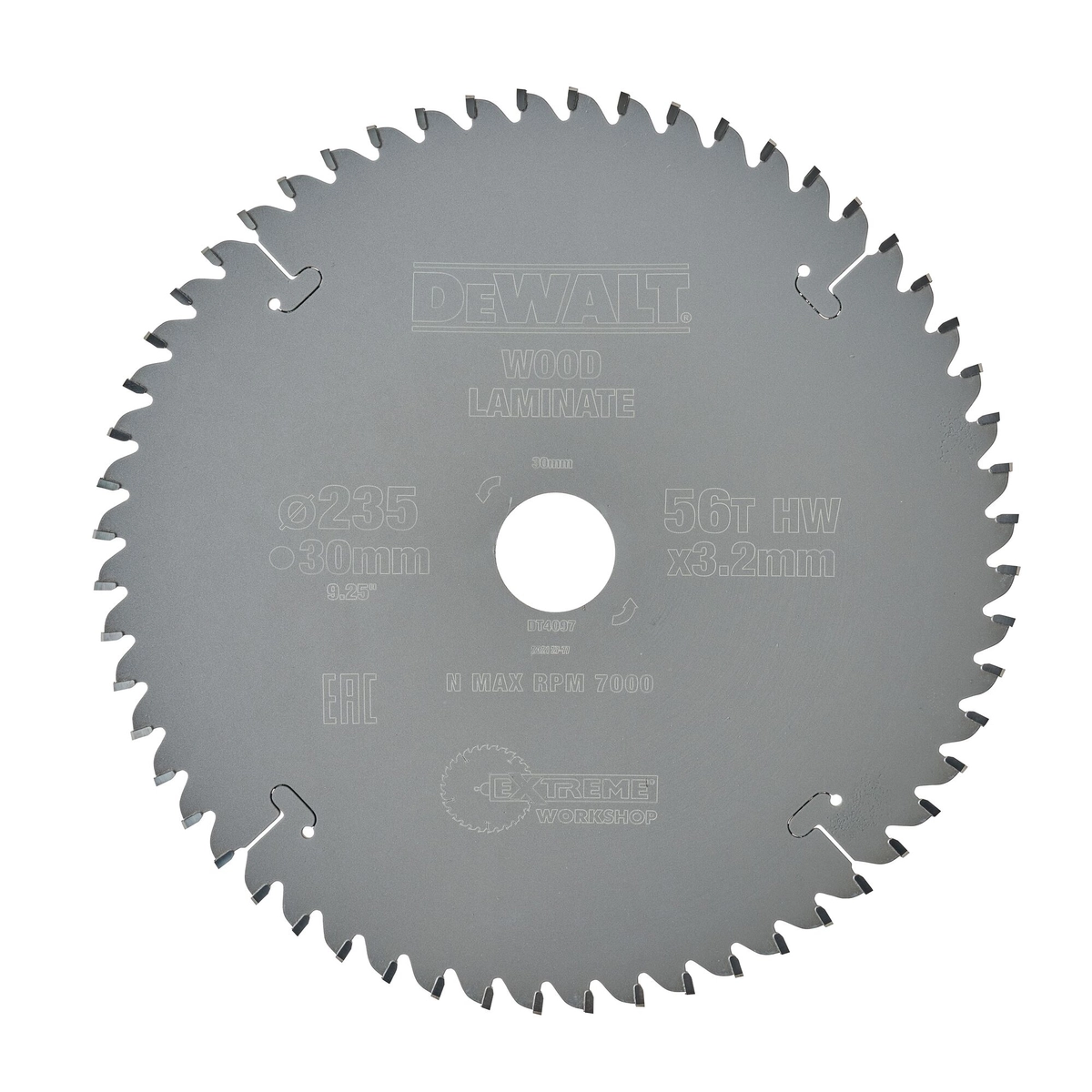 DeWALT DT4097-QZ to tarcza pilarska o średnicy 235 mm i otworze montażowym 30 mm, wyposażona w 56 zębów typu TCG (Triple Chip Grind). Zaprojektowana z myślą o precyzyjnym cięciu materiałów takich jak drewno naturalne, sklejka, MDF i laminaty. Laserowo wycinane szczeliny kompensacyjne redukują wibracje i hałas, co zapewnia gładkie i dokładne cięcia, a zęby z węglika spiekanego C4 umożliwiają wielokrotne ostrzenie, wydłużając żywotność tarczy.