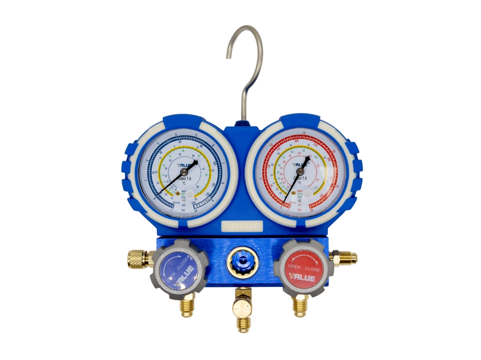 - Zestaw manometrów VALUE przeznaczony do układów chłodniczych i klimatyzacyjnych.