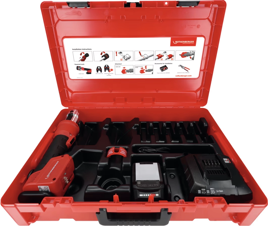 Dzięki zastosowaniu elektromechanicznego układu napędowego, ROMAX NANO został zoptymalizowany pod względem rozmiaru (najmniejsza maszyna o nacisku 32 kN) i masy (ok. 2,3 kg), aby zapewnić dostępność w każdych warunkach instalacji. ROMAX NANO jest również wyposażony w zaawansowaną inteligentną łączność, obejmującą technologię RFID, wyświetlacz LED i aplikację, która zwiększa zarówno łatwość obsługi maszyny, jak i wydajność pracy operatora bezpośrednio na placu budowy. Ta inteligentna prasa umożliwia precyzyjną pracę w zakresie roboczym 0-108 mm. Dzięki technologii eRotationDrive i uchwytowi szczęk 2 w 1, który pasuje zarówno do szczęk NANO iJAW, jak i szczęk standardowych.Zakres dostawy
