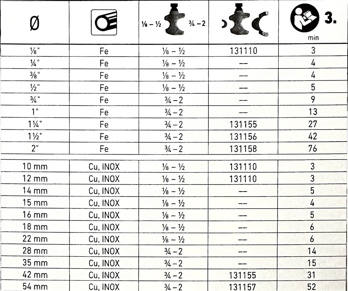 - Rury stalowe, miedziane, z tworzywa sztucznego i stabilizowane Ø 1/8–2" Ø 10–60 mm