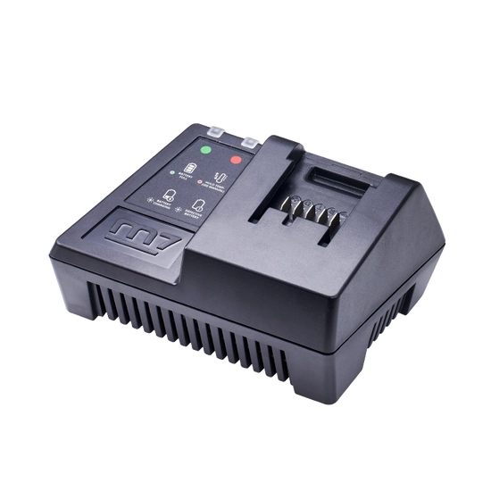 Ładowarka została zoptymalizowana pod kątem akumulatorów o napięciu 18V, co czyni ją kompatybilną z szeroką gamą narzędzi zasilanych bateriami Mighty Seven. Maksymalny prąd ładowania wynoszący 6A zapewnia szybkie i efektywne uzupełnianie energii, co pozwala na minimalizację przerw w pracy.