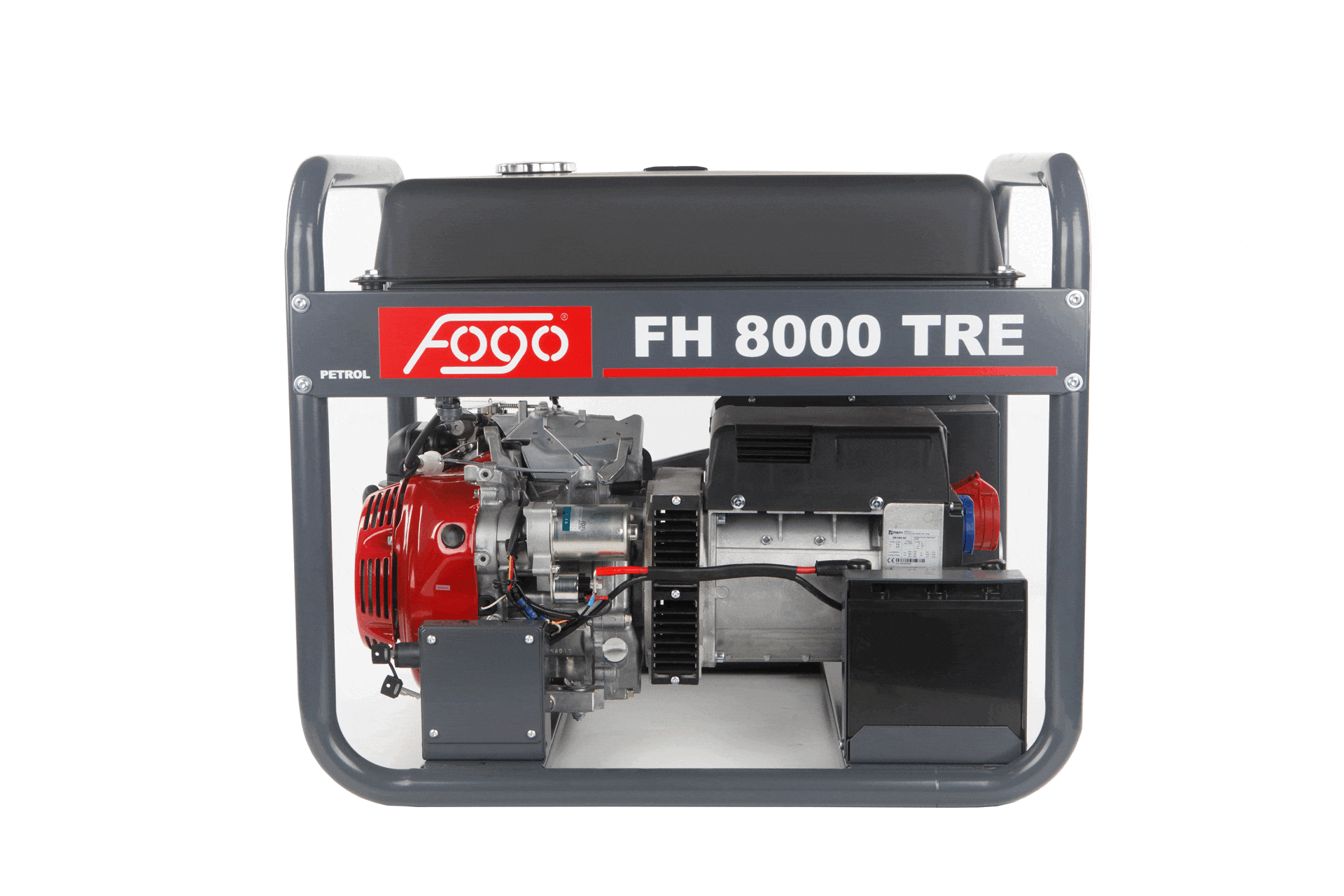Model Fogo FH 8000 TRE stanowi rozwinięcie popularnej linii FH, wzbogaconej o rozruch elektryczny ("E") i powiększony zbiornik paliwa ("T"). Napędzany jest niezawodnym, jednocylindrowym silnikiem Honda GX390 o pojemności 389 cm³, generującym moc 13 KM. Jednostka czterosuwowa chłodzona powietrzem zapewnia płynną, stałą pracę przez wiele godzin.
