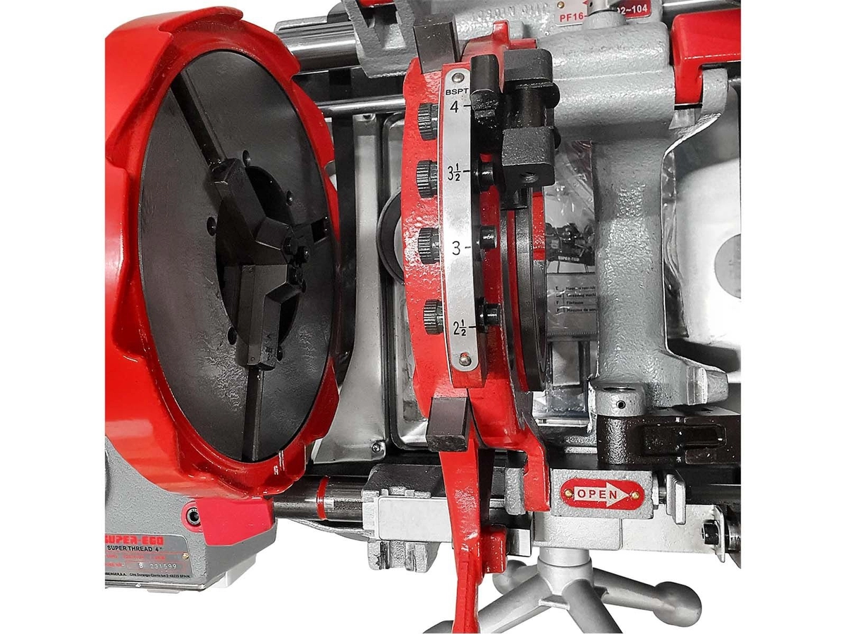 • Gwinciarka SUPER-EGO Heavy Work 4″. Przeznaczenie: cięcie, gwintowanie, gratowanie rur stalowych.