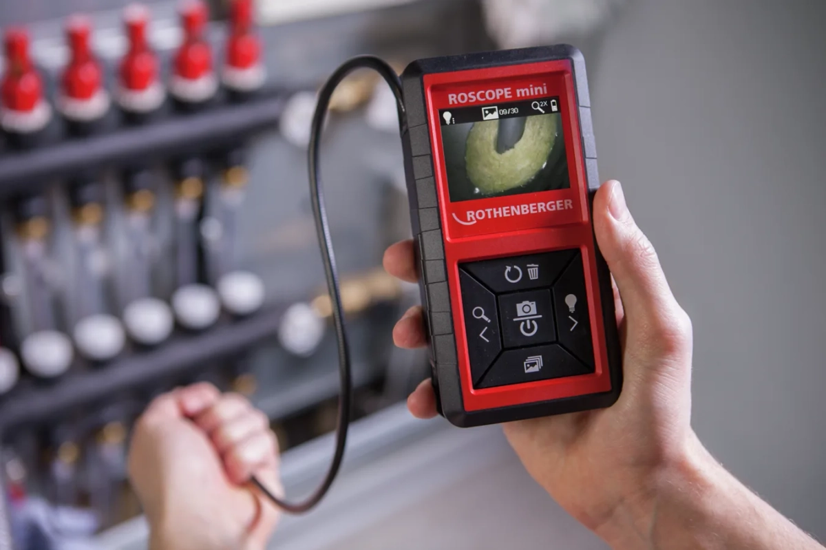 ROSCOPE mini jest stałym towarzyszem hydraulika - czy to na pasku, czy w skrzynce narzędziowej. Małe instalacje nie stanowią żadnego wyzwania, takiego jak szybka inspekcja syfonu, przyłącza prysznicowego lub inspekcja pustych przestrzeni pod kątem nowych instalacji. Połączenie najnowocześniejszej technologii, solidnej konstrukcji i kompaktowej konstrukcji sprawia, że ROSCOPE mini jest niezastąpiony w każdej torbie narzędziowej.