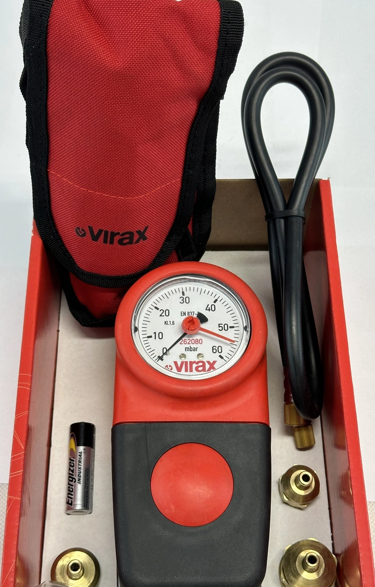 Analogowy tester szczelności wykorzystuje powietrze do testowania rur gazowych. Solidna obudowa sprawia kompozytowa, że VIRAX 2620 urządzenie kontroli szczelności instalacji gazowych jest produktem charakteryzującym się najwyższą niezawodnością i wytrzymałością.