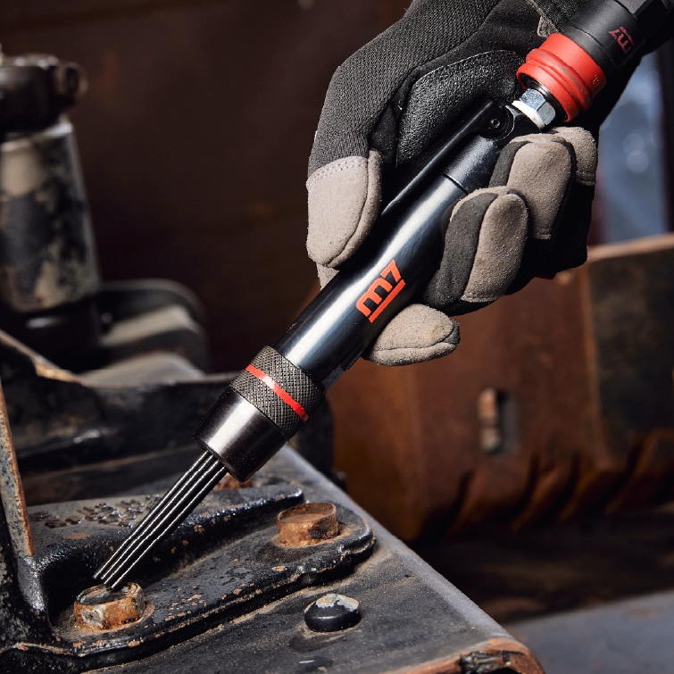 Mighty Seven SN‑1350 to kompaktowy i wydajny pneumatyczny młotek igłowy (needle scaler), idealny do usuwania rdzy, farby czy osadów spawalniczych. Połączenie ultraniskiej wibracji, niskiej wagi oraz wysokiej częstotliwości uderzeń sprawia, że to narzędzie doskonałe dla profesjonalistów wymagających szybkości, precyzji i wygody pracy.