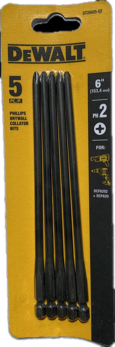 Zestaw 5 bitów PH2 153mm przeznaczone do stosowania z magazynkiem na wkręty DCF6202, który jest kompatybilny z wkrętarką do G-K DCF620.