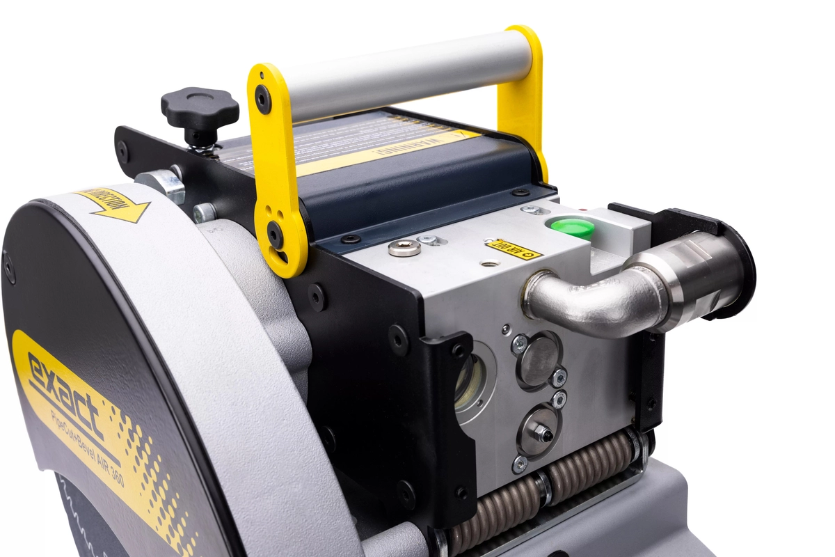 Exact PipeCut+Bevel AIR 360 to w pełni pneumatyczna przecinarka do rur, umożliwiająca jednoczesne cięcie i ukosowanie rur żeliwnych oraz z żeliwa sferoidalnego (ductile iron) w jednym procesie.