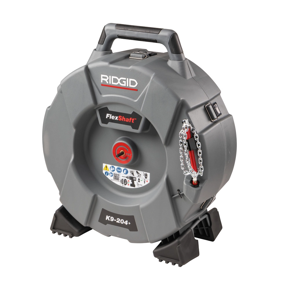 Maszyna FlexShaft® K9-204+ specjalizuje się w liniach odpływowych o większej średnicy, powszechnie spotykanych w budynkach komercyjnych. Model K9-204 może być stosowany do rur o średnicy 2" - 4" (50 - 100 mm) i jest wyposażony w przewód prowadzący 5/16" (8 mm) o długości 70' (21,3 m), zamknięty w wytrzymałej, nylonowej osłonie. Dostępna pełna oferta wybijaków łańcuchowych i akcesoriów