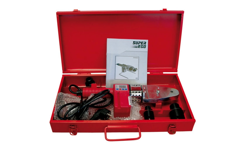 - Zgrzewarka polifuzyjna SUPEREGRO SEGO 63‑3, elektroniczna regulacja, 800 W, 20–63 mm, PP/PE/PB/PVDF, 6 kamieni (20‑63 mm), stalowa walizka, stojak, klucz imbusowy.
