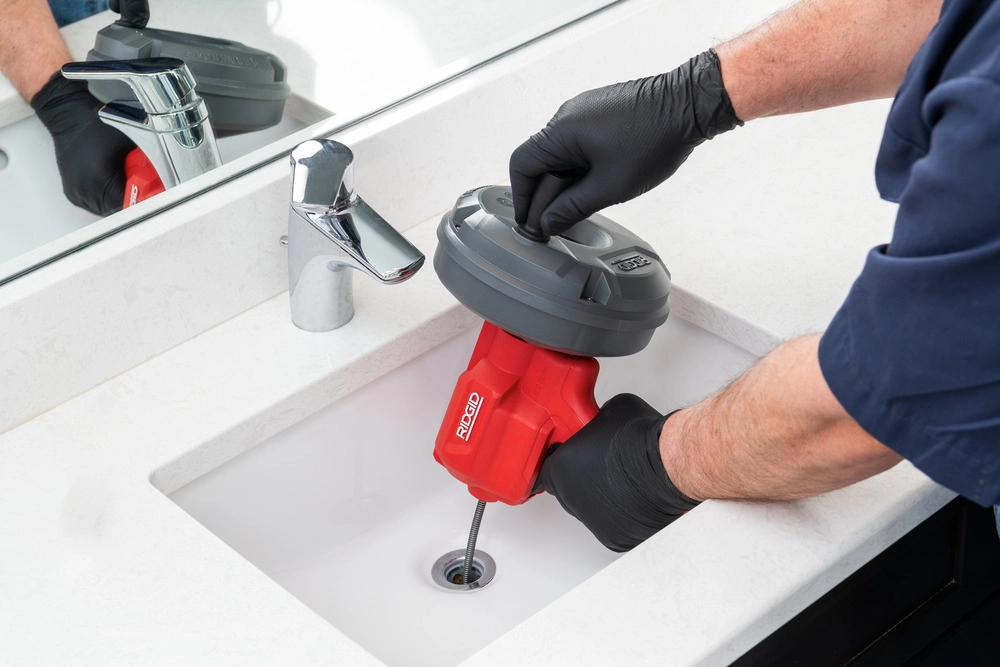 Przepychacz do odpływów RIDGID EZ Spin™ z łatwością czyści zatory w odpływach zlewów, umywalek, wanien i pryszniców. Opatentowana technologia samoposuwu AUTOFEED® umożliwia utrzymanie rąk w czystości i z dala od sprężyny dzięki jej automatycznemu przesuwaniu do przodu i wycofywaniu. Wysoce wytrzymała i odporna na załamania sprężyna MAXCORE 6 mm x 7,6 m dociera do dalekich zatorów w liniach odpływowych o średnicy do 50 mm. Sprężyna o długości 7,6 m zapewnia dokładne czyszczenie odcinka przed zatorem, samego zatoru i rury za nim, zapobiegając w ten sposób kolejnemu gromadzeniu się zanieczyszczeń. Sprężyna ma „ogranicznik”, który zapobiega przypadkowemu wysunięciu się sprężyny z bębna. Końcówka spiralna w kształcie gruszki wwierca się bezpośrednio w zator, poprawiając zdolność spirali do rozbijania i usuwania zanieczyszczeń. Lekka konstrukcja i uchwyt zapewniają użytkownikowi komfort i stabilność podczas czyszczenia, dzięki czemu można oprzeć uchwyt bezpośrednio na zabudowie zlewu. Wystarczy nacisnąć spust i obrócić bęben, aby rozpocząć usuwanie zatoru.