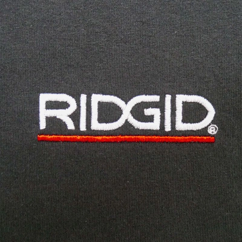 - Na lewej piersi wyhaftowano napis „RIDGID” w kolorze białym i czerwonym
