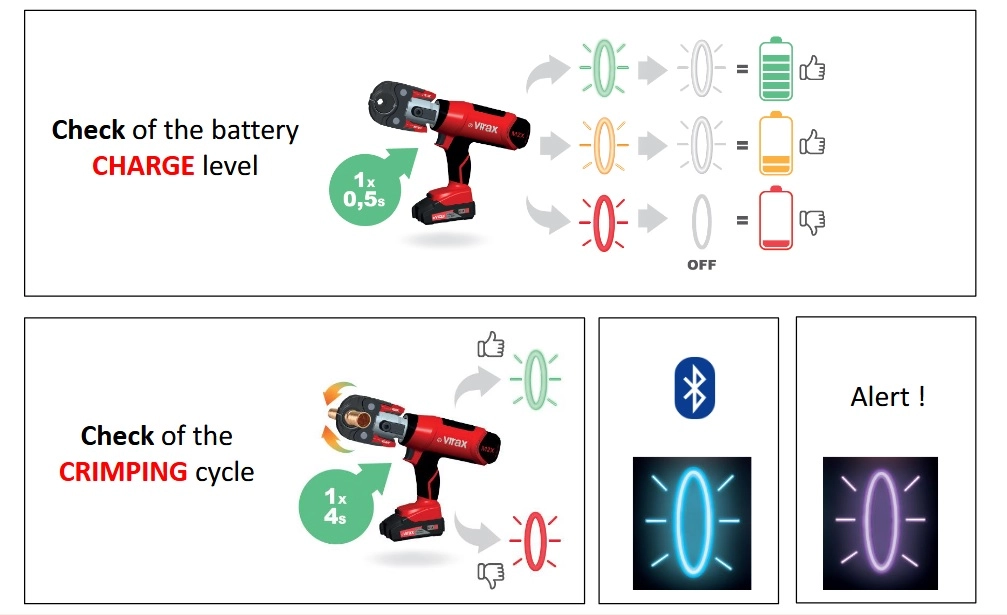 - Elektromechaniczna zaciskarka 20 kN zasilana akumulatorem, z automatycznym powrotem tłoka.