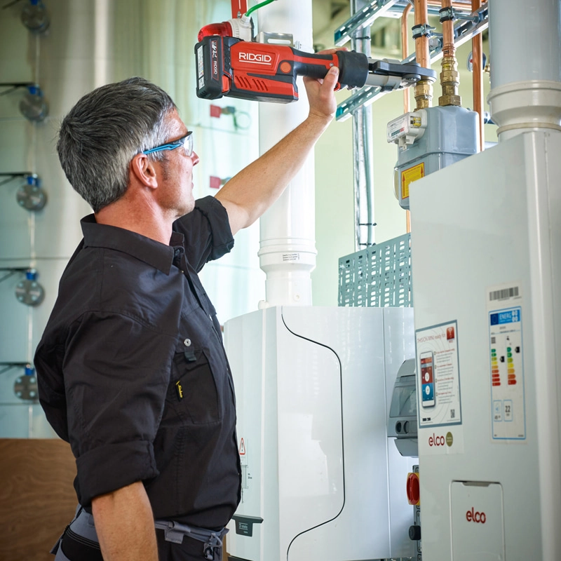 NOWA TECHNOLOGIA SILNIKÓW BEZSZCZOTKOWYCH RIDGID. Bezszczotkowy silnik w zaciskarce RP 351 oferuje wyższą wydajność (szybsze zaciskanie), wyższą efektywność (więcej zaciśnięć na jednym ładowaniu), bezpieczniejsze działanie (bez iskrzenia, bez ryzyka przegrzania), większą trwałość (bez zużywających się szczotek) oraz dłuższą trwałość eksploatacyjną (osiągają ponad 100 tys. cykli zaciśnięć).