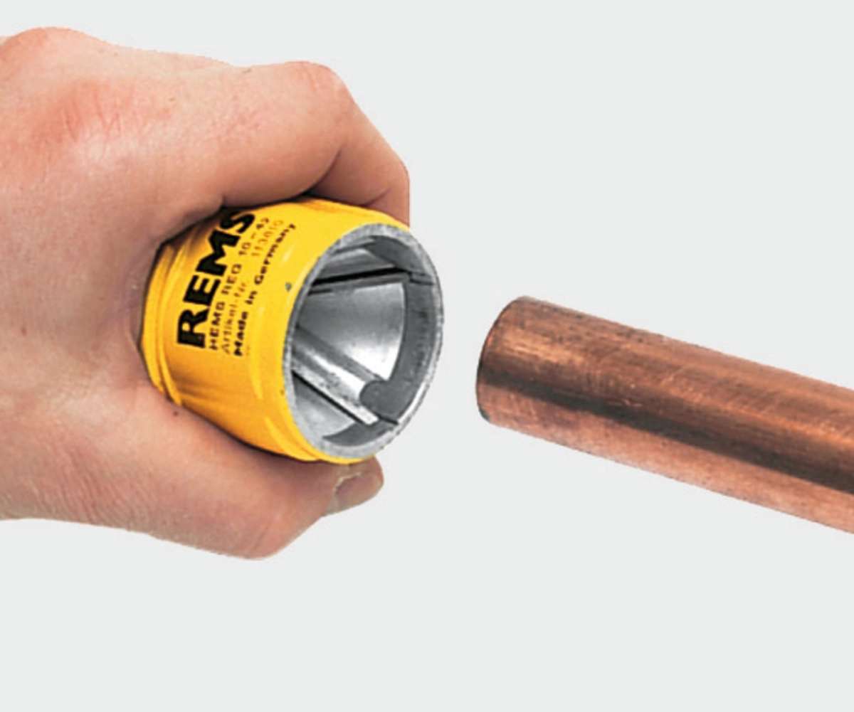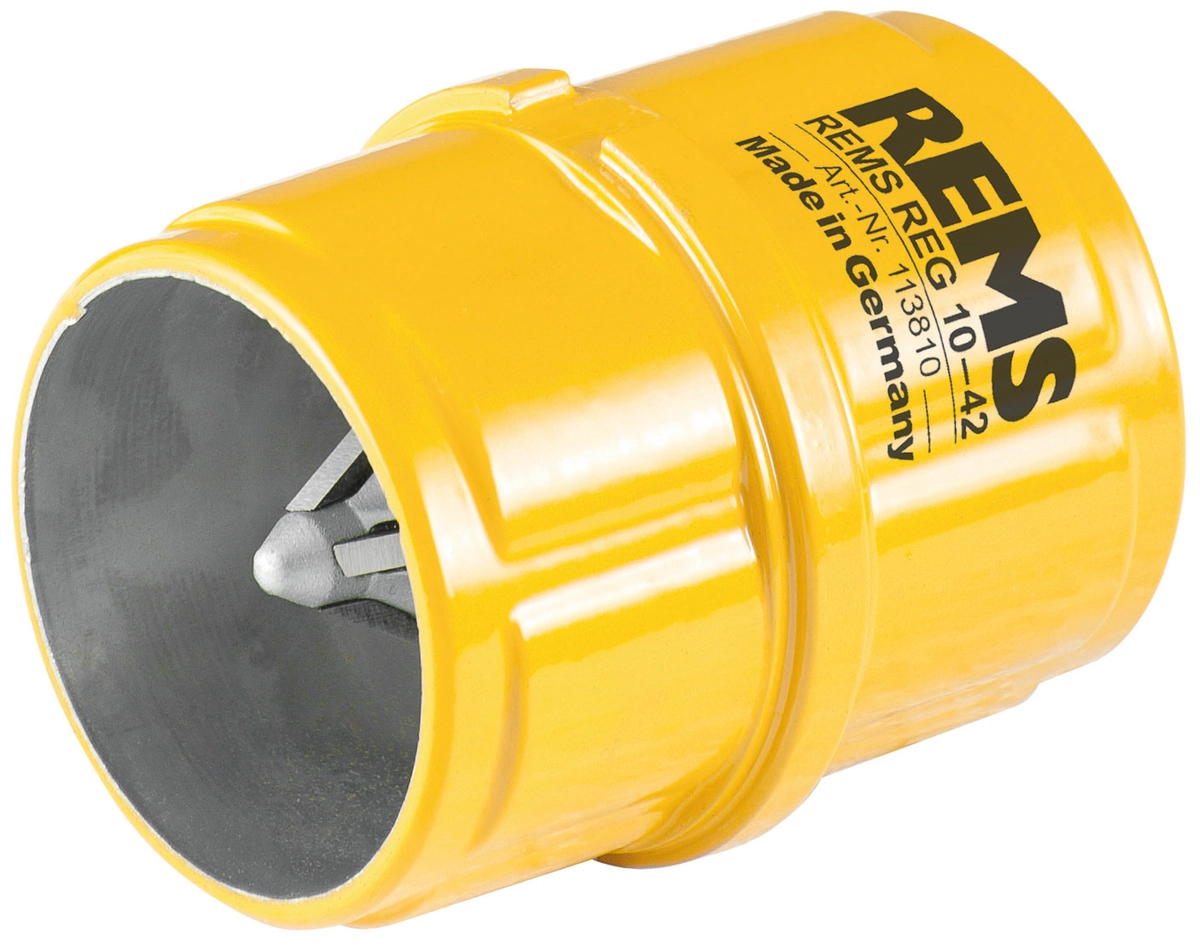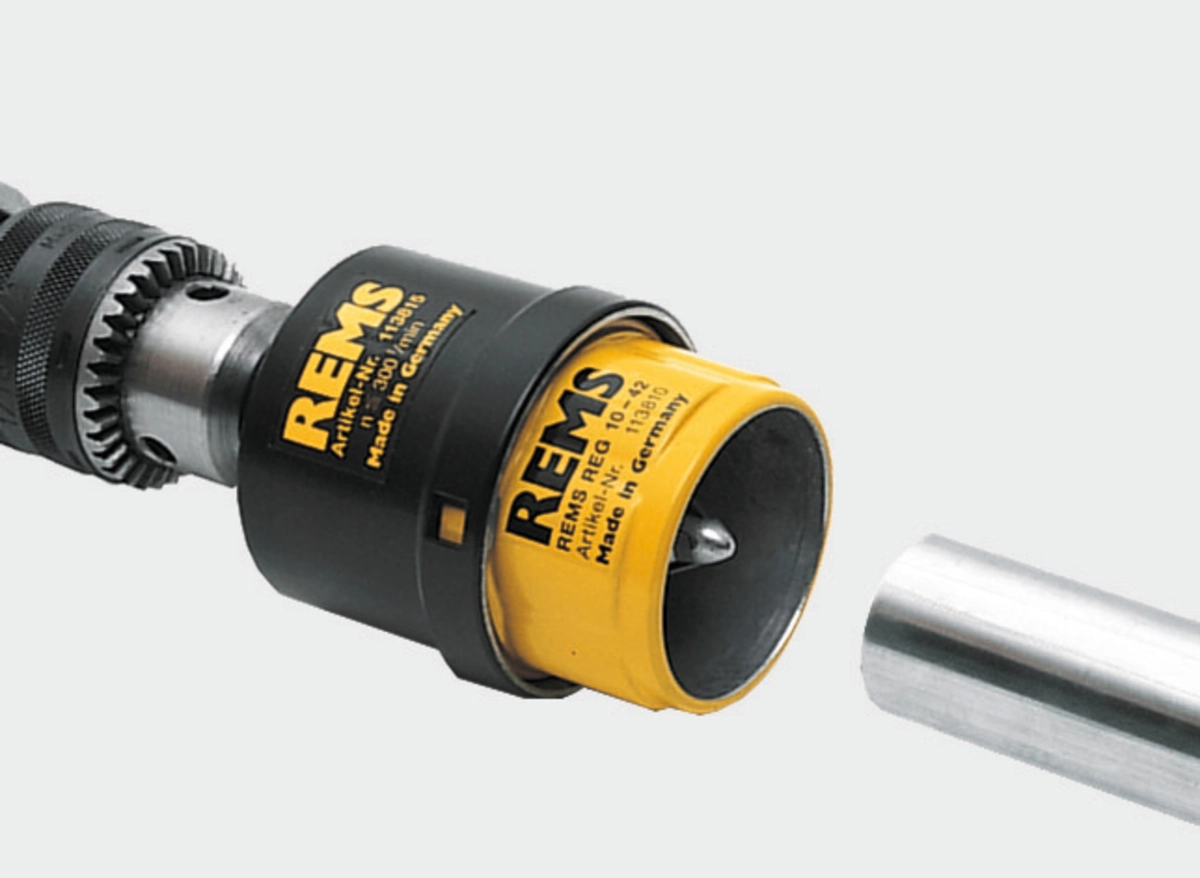 REMS REG 10–42. Zewnętrzno/wewnętrzny gratownik do rur, ręczny lub z napędem elektrycznym.