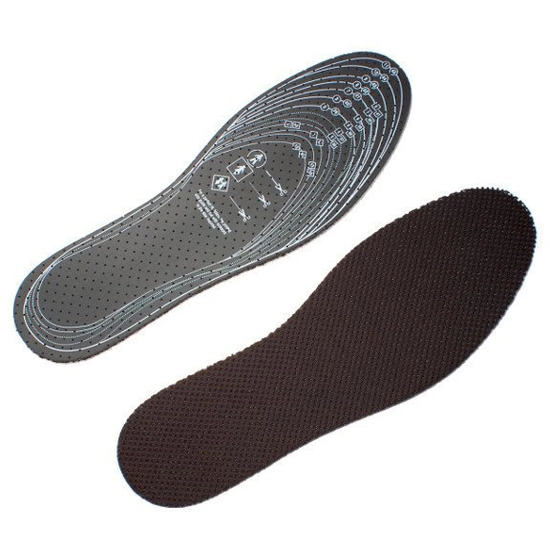 • Dwuwarstwowe wkładki do butów. Wykonane ze spienionego lateksu pokrytego siatką bawełnianą.