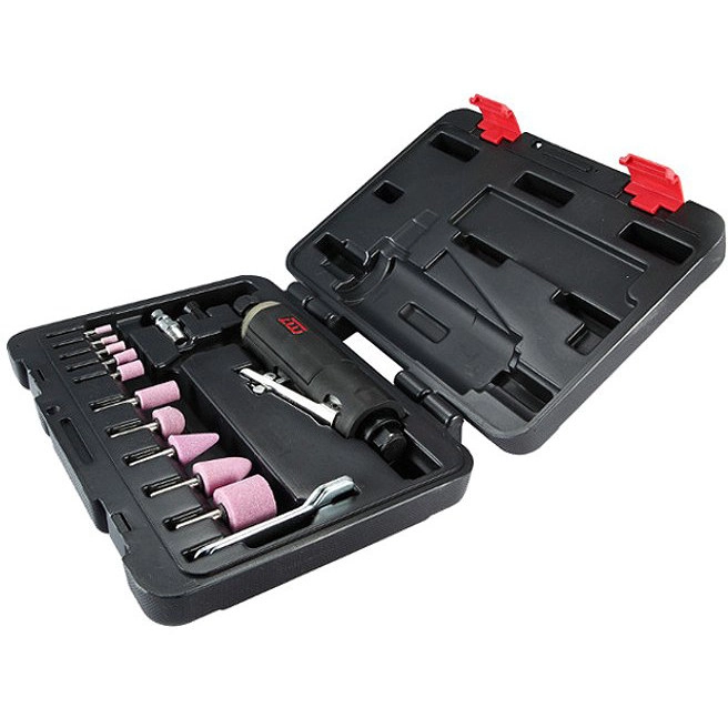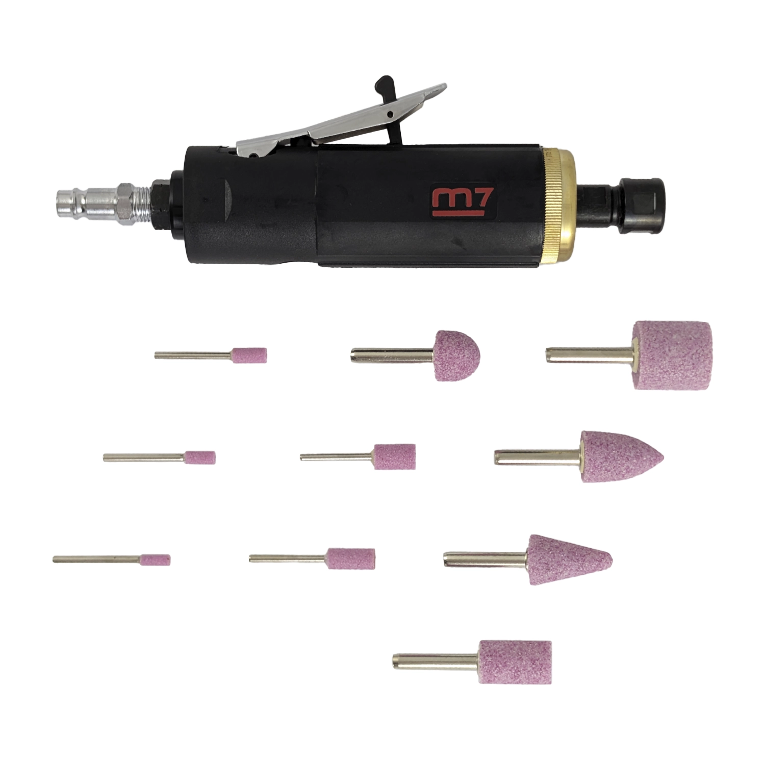 Mighty Seven QA-211, która wchodzi w skład zestawu QA-0215 to flagowy model kompaktowej szlifierki trzpieniowej stworzony z myślą o intensywnych pracach związanych z obróbką zgrubną. Wyposażona w potężną turbinę napędową i wytrzymałe podzespoły, QA-211 doskonale radzi sobie z wymagającymi zadaniami, takimi jak gratowanie, wyrównywanie spoin spawalniczych czy obróbka trudnych powierzchni.
