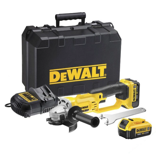 - akumulatorowa szlifierka kątowa XR Li-Ion 18 V najnowszej generacji z akumulatorami o pojemności 4.0 Ah;