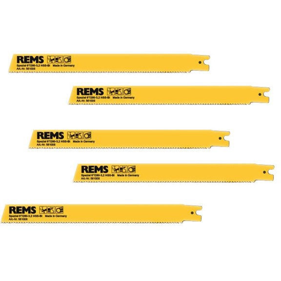 Do materiałów trudno obrabialnych, np. rur ze stali nierdzewnej, twardych rur żeliwnych, należy używać zamiast brzeszczotów specjalnych REMS, drobniej uzębionych brzeszczotów uniwersalnych REMS w połączeniu z REMS Tiger ANC SR z elektronicznym regulatorem obrotów.