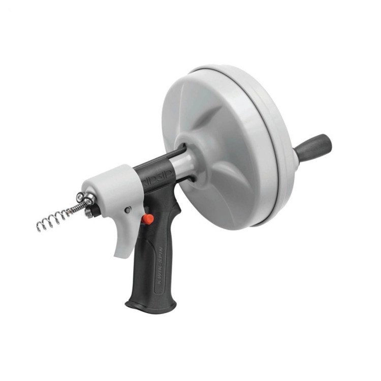 KWIK-SPIN to idealny ręczny przepychacz do udrożniania kanalizacji o średnicach do 40mm ( 1 ½”). Doskonale czyści odpływy od kabin, umywalek, wanien, zlewów, pralni itp.  System posuwu spirali AutoFeed ® automatycznie podaje i chowa sprężynę do bębna, pozwalając utrzymać w czystości ręce operatora oraz miejsce pracy.  Wygodny, wzmocniony uchwyt oraz korba do pokręcania spirali zapewnia wygodną obsługę. Wzmacniana spirala (sprężyna) o średnicy 6,3mm (1/4”) i długości 7,6m zakończona jest roboczą końcówką gruszkową.
