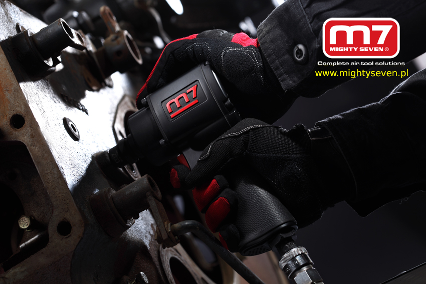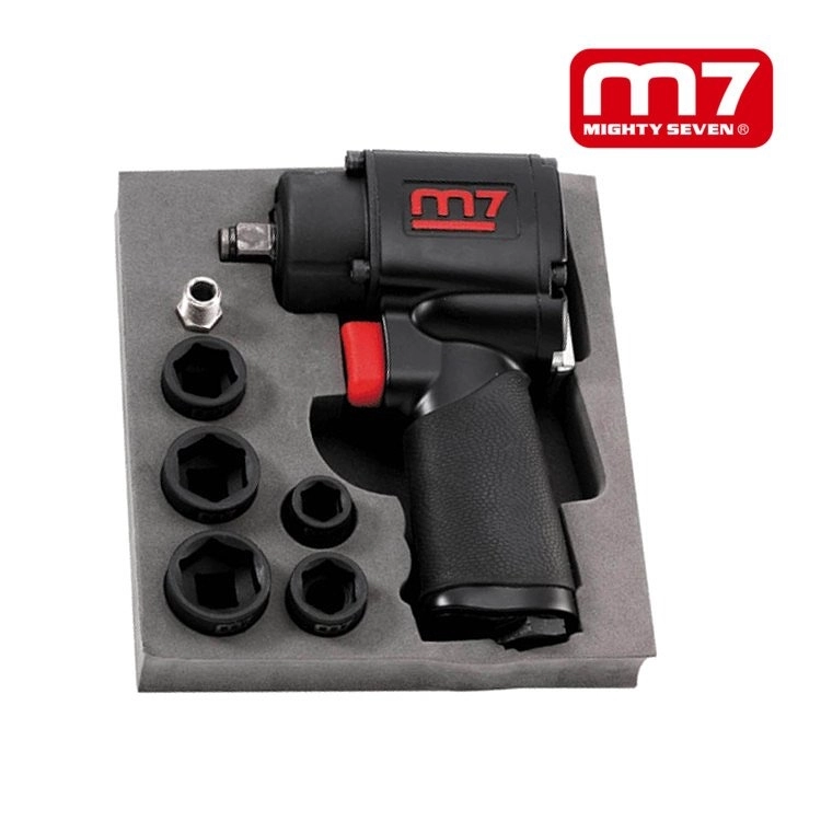 Klucz pneumatyczny udarowy wyposażony w mechanizm udarowy typu pojedynczy bijak „ Jumbo Hammer” Klucz ten to najnowsze dziecko koncernu Mighty Seven , jest to zdecydowanie najmniejszy klucz na rynku oferujący aż 610 Nm. momentu obrotowego przy zaledwie 115.5 mm długości oraz 1.6 kg wagi. Warto zwrócić uwagę na poziom zużycia powietrza który w przypadku narzędzi M7 jest wyrażony w Litrach Minutę i jest bardzo niski w stosunku do narzędzi konkurencyjnych marek.