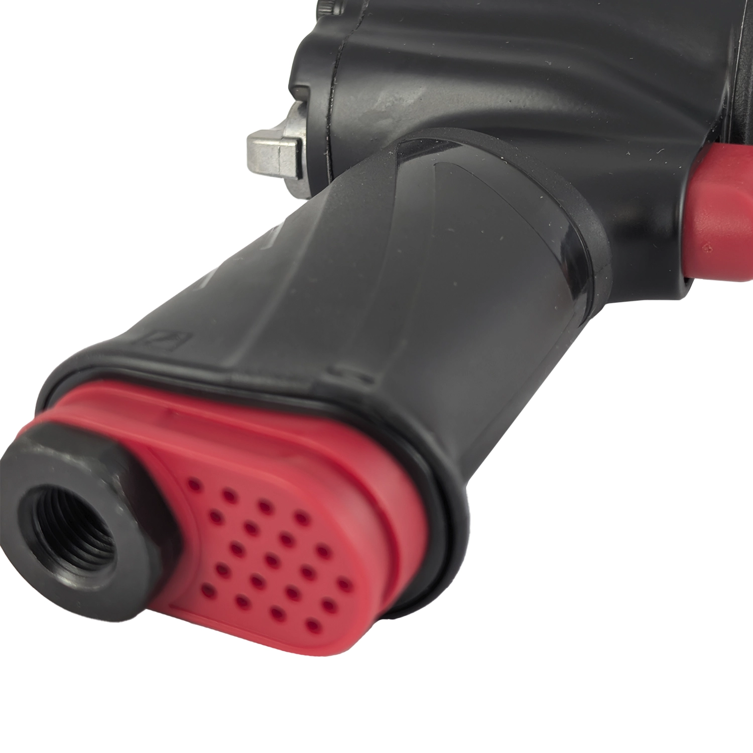 Rękojeść typu ciepły dotyk w kluczach Mighty Seven to innowacyjne rozwiązanie, które znacząco podnosi komfort i ergonomię pracy z kluczami udarowymi pneumatycznymi. Dzięki zastosowaniu specjalnych materiałów, powierzchnia rękojeści nie tylko zapewnia pewny chwyt, ale także minimalizuje uczucie zimna, nawet podczas pracy w trudnych warunkach, takich jak niskie temperatury w warsztatach czy na otwartej przestrzeni.