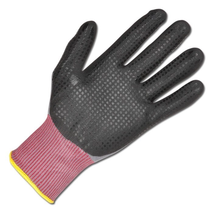 Równe i dokładne nitrylowe powleczenie podszewki rękawicy zapewnia, iż skóra ręki ma kontakt wyłącznie z miękkim i przyjemnym nylonowym materiałem co znacznie poprawia komfort pracy.