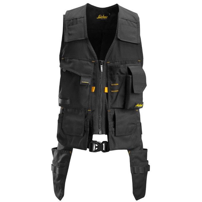 - Wielofunkcyjna, wytrzymała kamizelka narzędziowa o ergonomiczny kroju, z wygodnymi szerokimi pasami na ramionach i elastycznym panelem na plecach. Możliwość regulowania w zależności od sposobu i pozycji pracy.