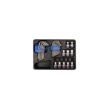 ZESTAW29cz. - SZCZYPCE 3cz., WKRĘTAKI PŁASKIE/KRZYŻAK 10 cz., IMBUSY 1120M/1130S HEX Z KULKĄ, WKŁAD Z PIANKI EVA DO WÓZKA 9-90129CRV King Tony