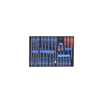 ZESTAW WKRĘTAKÓW 24 cz. KRZYŻAKI PH1 - PH3, PŁASKIE 3 - 10mm, TORX T6 - T30, WKŁAD Z PIANKI EVA DO WÓZKA 9-31124MRV King Tony